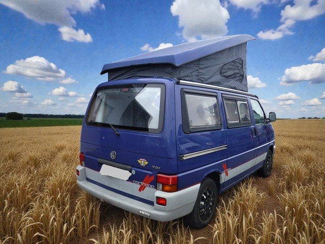 Van 1,99m Volkswagen T4 Carthago – VASP d’origine – Toit relevable (toile neuve) – 4 couchages